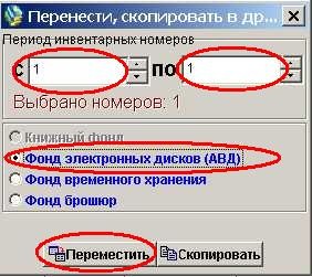 скопировать в другой фонд. Ниже выберите фонд, в который необходимо перенести или скопировать книжные издания.